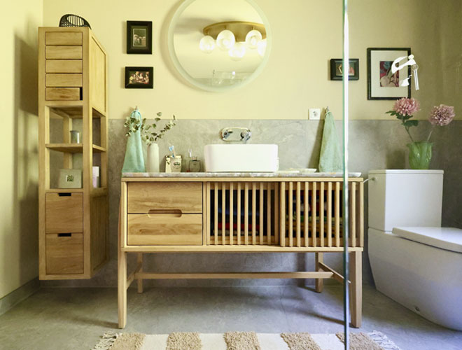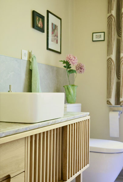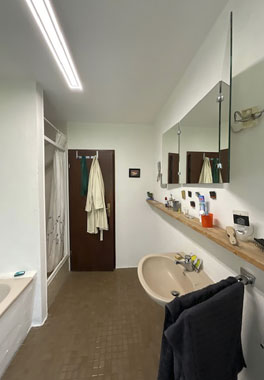 Nachdem ich Küche und Arbeitszimmer für meinen lieben Kunden renovieren durfte, kam nun das Badezimmer an die Reihe und wurde von mir neu gestaltet. Der Retrocharme des Einfamilienhauses wurde auch in das Badezimmer transferiert. Ein neues warmes, individuelles und behagliches Badezimmer ist entstanden.