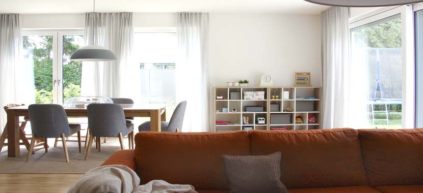 Eine Familie mit drei kleinen Kindern, die nach einigen Jahren im Ausland wieder zurück nach Deutschland kehrt und neu in eine Doppelhaushalte einzieht. Der Wunsch war sofort da, sich in der Einrichtung für den Wohn/Essbereich, Arbeitszimmer und das Elternschlafzimmer beraten zu lassen. Sie wünschten sich für Ihre Räume Wohnlichkeit gepaart mit Familientauglichkeit.